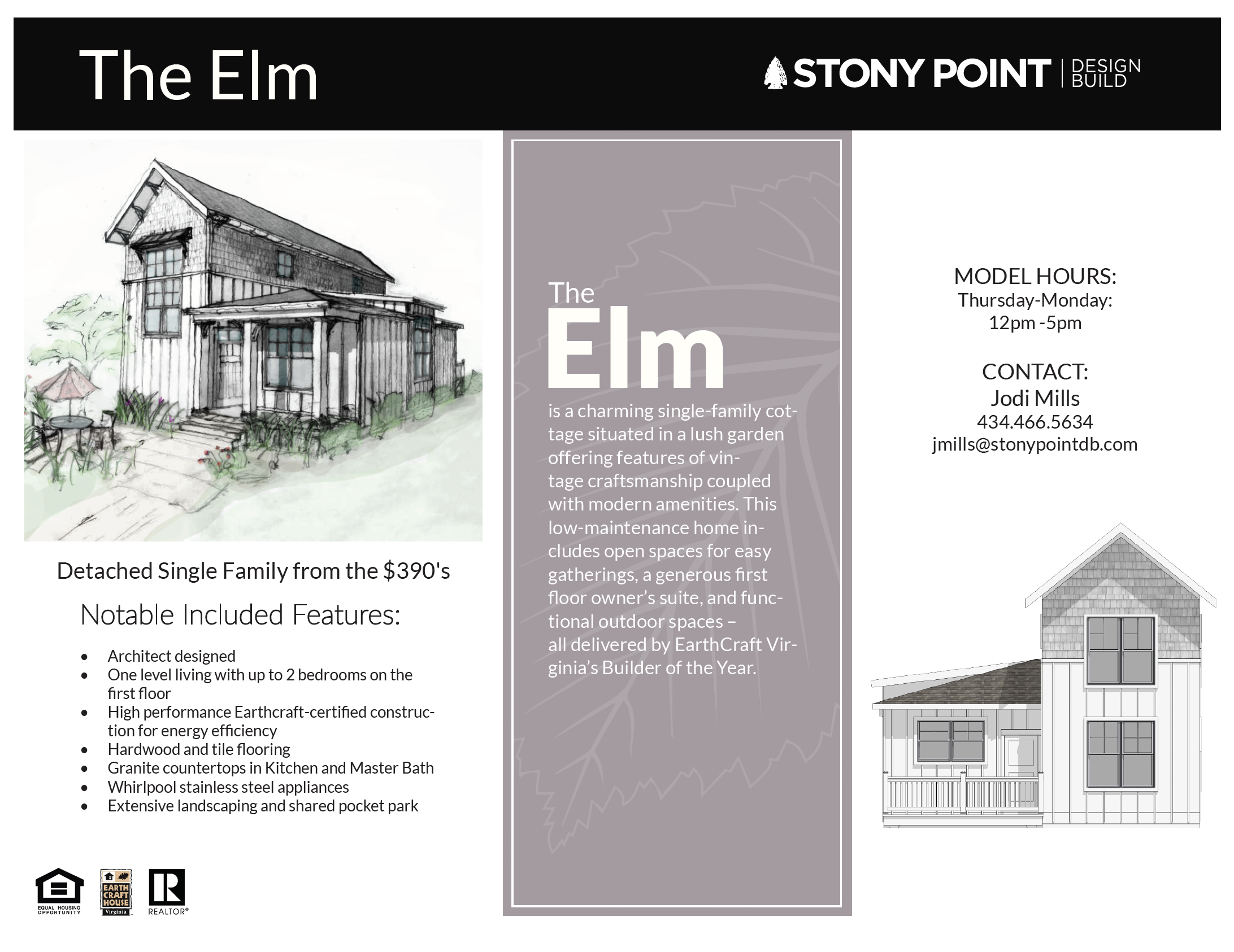 The Elm is a single- family cottage set in a lush garden offering the quality of vintage craftsmanship and appointed w/ modern designer finishes. Painted Shaker kitchen cabinets w/Quartz perimeter countertop, Butcher Block Island Top, tile backsplash and stainless appliances. Oak hardwood flooring in main living area and shiplap ceiling detail. First floor owner’s suite w/ 2nd bedroom/den. Gas fireplace with rustic mantle and shiplap trim detail. Furniture style vanities in baths with owner’s bath mosaic detail tile shower and glass enclosure. 2nd floor flex space, spacious bedroom and full bath. 2-Car Garage with great storage and craft room space in lower level. Covered front porch and large rear deck. Yard maintenance included in HOA.